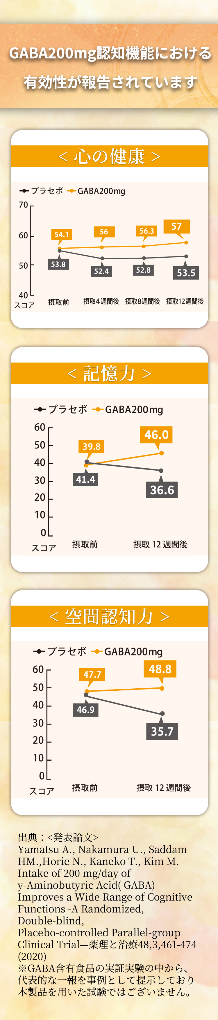 飲み始めてから朝からハッキリしている気がして、心も穏やかに、過ごせていますのでGABA200mgの力はすごいかも!と感じています。