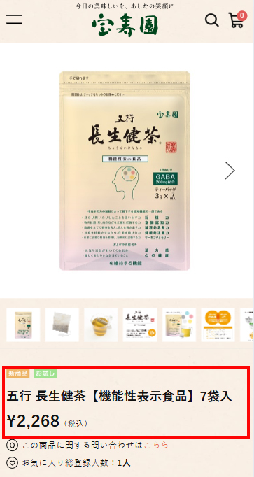 五行 長生健茶は、宝寿園さんの公式サイトでお試し7日分が2,268円(税込)で販売されていますが、今ならインターネット限定で500円になるキャンペーンをやっていますので、年齢による認知機能が不安の方、つい・うっかりが増えたと感じる方、中高齢者の活力感や心の健康を維持したい方は一度試してみてはいかがでしょうか?